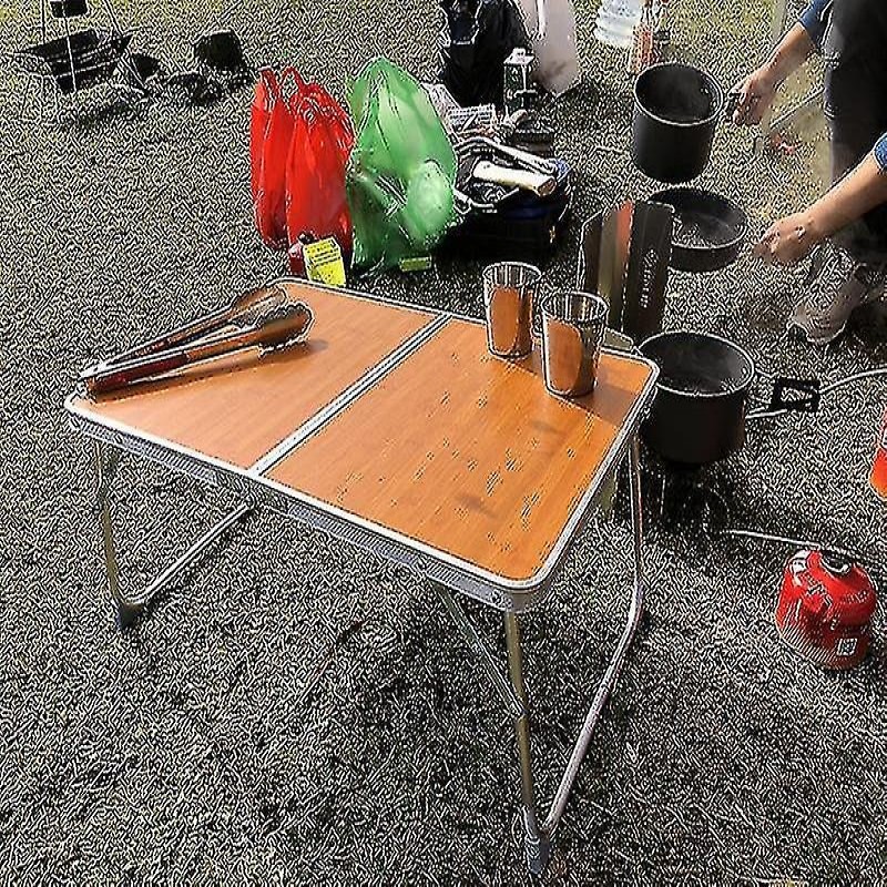 Hopfällbart campingbord i aluminiumlegering för utomhusbruk (träfärgad)