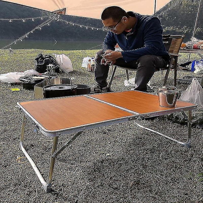Fällbart utomhusbord i aluminiumlegering, campingbord (träfärgat)