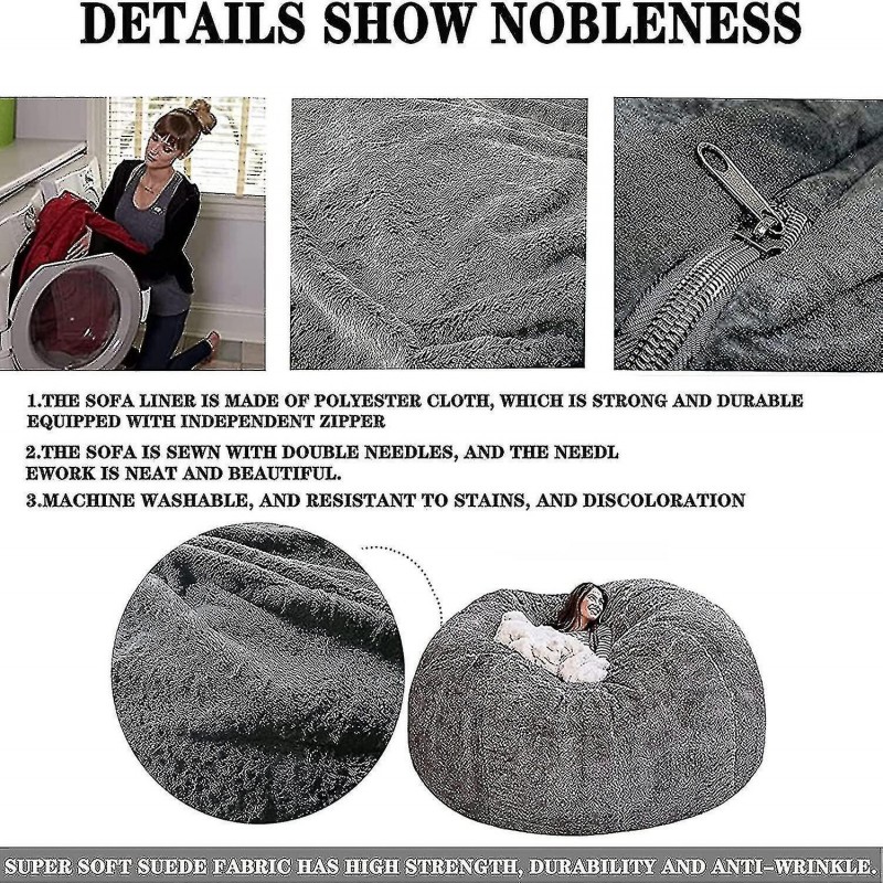 Saccosäcköverdragen är slitstarka och ultramjuka. Vi har uppgraderat tyget med ett tjockare, lyxigare material som är utformat för att stå emot tidens tand. (Utan fyllning) - Mått: 135 x 65 cm, 150 x 75 cm. (Utan fyllning) - Tillverkad av uppgraderad mikrosammet, tjockare, mjukare, vilket ger en supermjuk och silkeslen känsla, lätt att ta bort och tvätta, slitstark och fläckbeständig, designad för att stå emot tidens tand. (Utan fyllning) - Byt ut din nuvarande soffa mot denna extremt bekväma saccosäck som är ett modernt tillskott till ditt vardagsrum. Vi erbjuder ett brett urval av lyxiga saccosäckar som passar perfekt in i ditt vardagsrum. (Utan fyllning) - Från små saccosäckar till jättelånga saccosäckar är dessa lyxiga saccosäckar det perfekta tillskottet till alla källare, vardagsrum, sovrum eller gästrum, oavsett om det används som en bekväm studieplats eller en spelfåtölj. Saccosäckar för vuxna, tonåringar och barn.