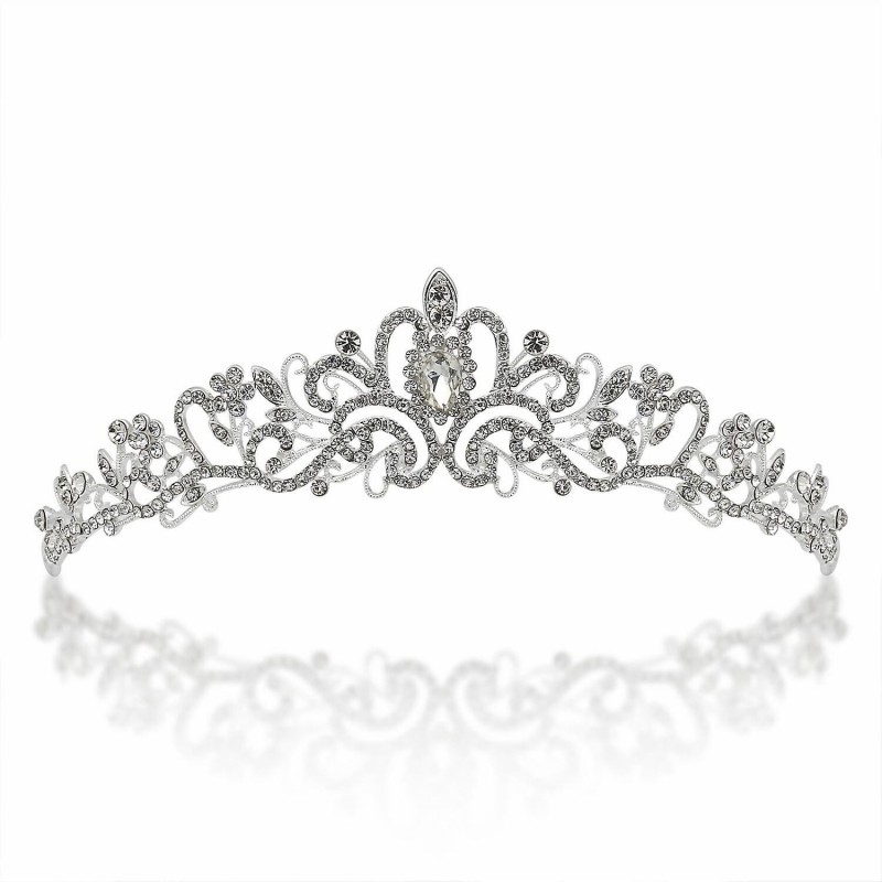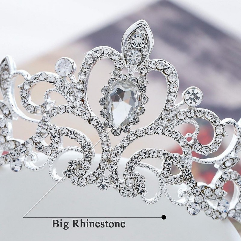 Bröllopskrona, tiara, silver, metall med kristaller, 16x22x4,5 cm
