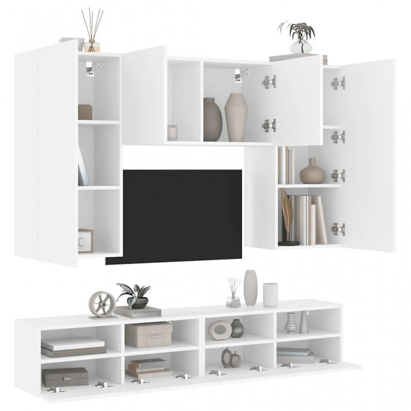 Dessa TV-väggenheter erbjuder en perfekt lösning för att skapa extra förvaringsutrymme i ditt vardagsrum och hålla saker organiserade. Robust material: Trä är ett exceptionellt högkvalitativt material med en slät yta som kännetecknas av sin styrka, stabilitet och fuktbeständighet. Väggfäste: TV-bänken kan monteras på väggen för att skapa extra förvaringsutrymme. På så sätt kan du maximera din golvyta och hålla ditt rum snyggt. Det väggmonterade TV-skåpssetet erbjuder olika förvaringsalternativ och gott om utrymme för att hålla böcker, DVD-skivor, tidskrifter, media och andra vardagsföremål organiserade och inom räckhåll. Mångsidig design: Du kan använda skåpet som ett TV-bänk eller montera det på väggen på ditt kontor för att enkelt förvara redskap eller andra föremål. Det förvandlar också omedelbart en tom vägg till ett designelement. Bra att veta: Skruvar och pluggar för väggens insida ingår inte. Vi rekommenderar att du hittar och använder skruvar och pluggar som är speciellt utformade för dina väggar. Om du är osäker kan du kontakta en fackman. Läs och följ varje steg i instruktionerna. Färg: Vit Material: Konstruerat trä Monteringskrav: Ja Leveransen inkluderar: 2 x Väggskåp: 80 x 30 x 30 cm (B x D x H) 2 x Väggskåp: 40,5 x 30 x 90 cm (B x D x H) 1 x Väggskåp: 80 x 30 x 41 cm (B x D x H)