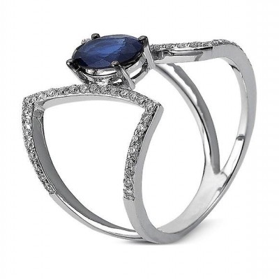 Luna Creation Ring - 14K Vitt Guld med Diamanter och 0,23 ct Safir - 1B684W4535-1-53