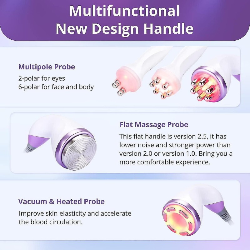 Version 2.5, Kraftfullare: Vår 8-i-1-skönhetsmaskin har en platt handtagsdesign i version 2.5 med lägre ljudnivå och mer kraft än de andra platta handtagen. Handtaget är ergonomiskt utformat och lätt att hålla i. Unikt utseende, pekskärmsdesign: Oavsett om du använder den som en skönhetsmaskin kommer denna underbara skönhetsmaskin att dra till sig allas uppmärksamhet. Pekskärmsdesignen gör den enkel att använda från sittande position, från att byta funktioner till att justera effektnivåer med en fingertryckning. Multifunktionell: Om du köper denna skönhetsmaskin och använder den hemma kan du få samma resultat utan att spendera tid på salongen, vilket också sparar dig mycket pengar. Den används också i skönhetssalonger. Det är ett utmärkt val som present till familj och vänner.