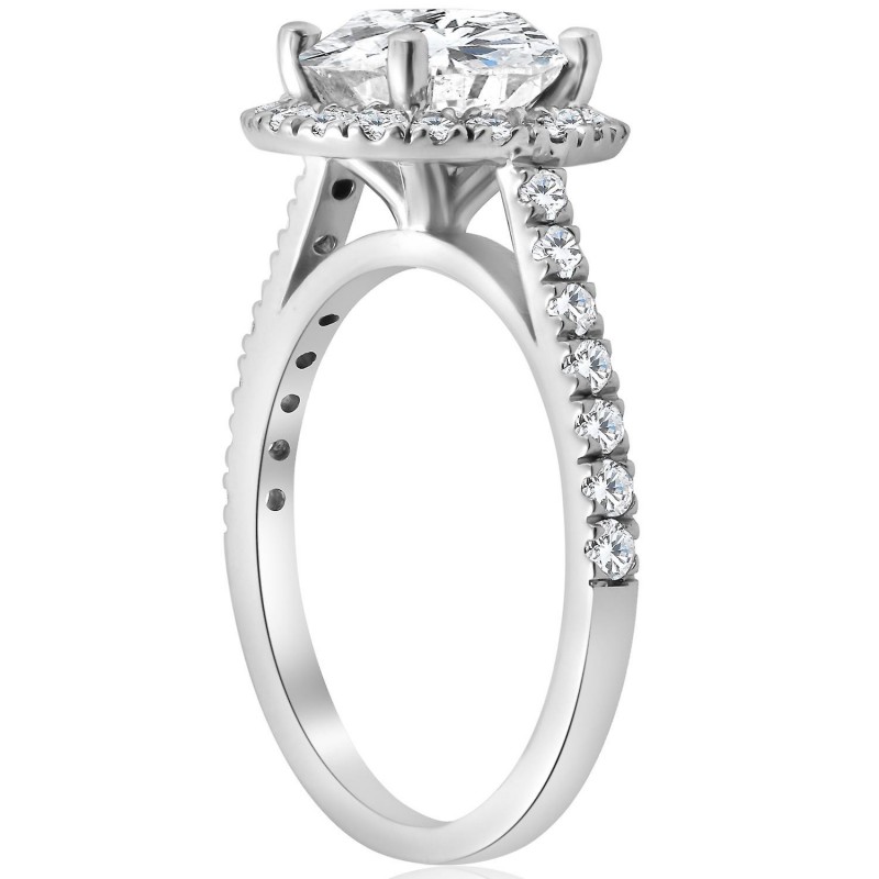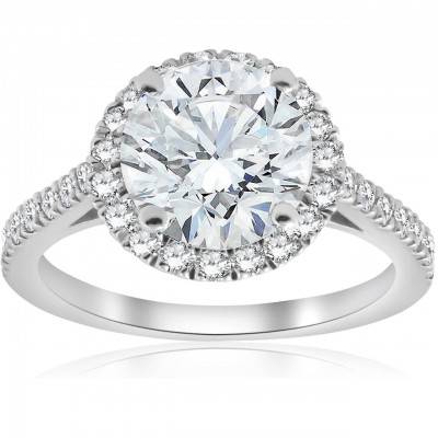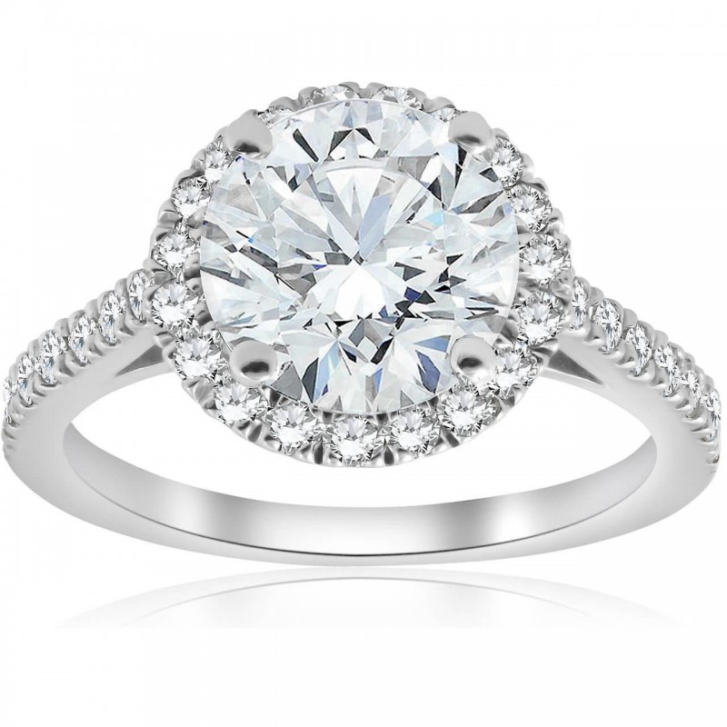 14k vitguld med 2 1/2 karat halo-slipad rund diamantförlovningsring