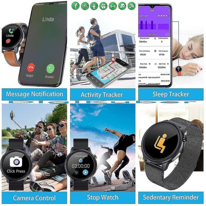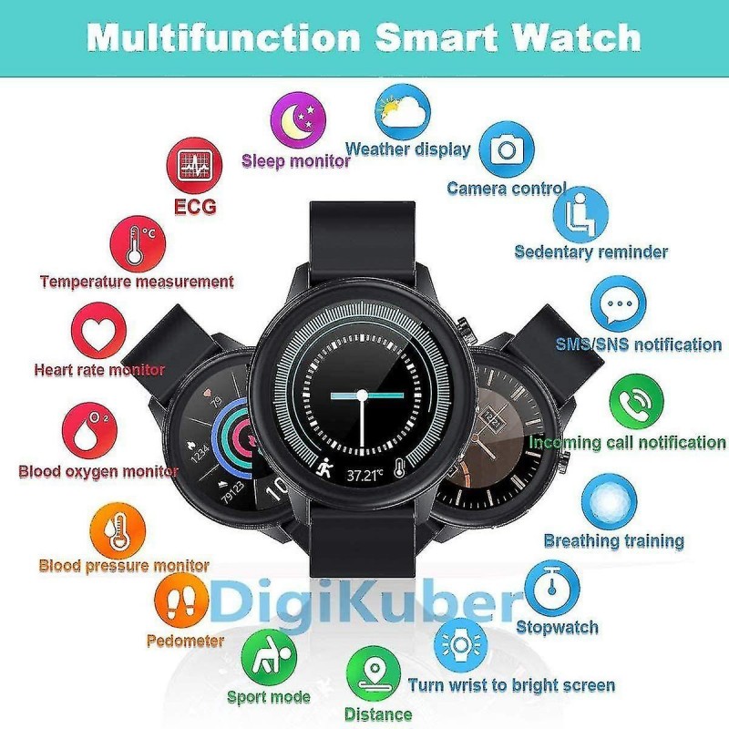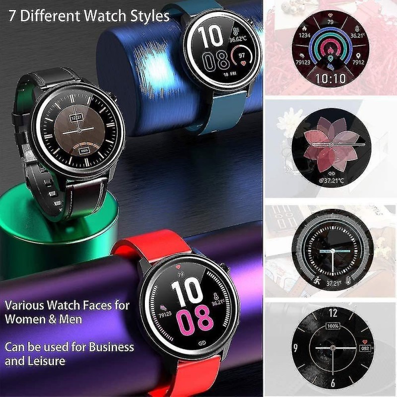OLIKA FUNKTIONER som tids- och datumvisning, väderdisplay, samtals- och meddelandeaviseringar, stegräknare, kaloriförbrukningslogg, sportmätningslogg, 7 sportlägen, pulsmätare, EKG/PPG/AI-diagnos, kamerastyrning, sömnmonitor, påminnelse om stillasittande, stoppur, andningsträning. 24-TIMMARS KROPPTEMPERATURMÄTARE Den kan mäta din kroppstemperatur i 24 timmar, kroppstemperaturdata kan sparas i [SmartHealth]-APPEN, du kan övervaka din kroppstemperatur och övervaka din hälsa när som helst. SPORT- OCH HÄLSOHANTERING Spåra flera sporter och hälsodatamätning: Multisportläge, stegräknare, distans, kalorier; EKG/PPG/AI-diagnos/pulsmätare. Var uppmärksam på din hälsa hela tiden. Sport- och hälsodata från smartklockan är endast för referens, lyssna på läkarens råd. SÖMNMONITOR OCH VÄDERDISPLAY Sömnövervakningsfunktion: När du somnar beräknar smartklockan automatiskt din sömnkvalitet och synkroniserar data med appen. Du kan ta reda på din sömnkvalitet. Väderdisplayfunktionen visar aktuell väderinformation och luftkvalitet. (Obs: Du behöver hämta din telefons platsinformation för att se vädret.) IP68 VATTENTÄT OCH MAGNETISK LADDNING IP68 har utmärkt vattentät prestanda och kan uppfylla de flesta dagliga behov. (Obs: Sänk inte ner den i djupt vatten under längre tid. Använd den inte heller i varma källor eller varma bad.) Magnetisk sugladdning, laddningstiden är cirka 3-4 timmar, användningstiden är cirka 5-13 dagar, standby-tiden är 20-40 dagar.
