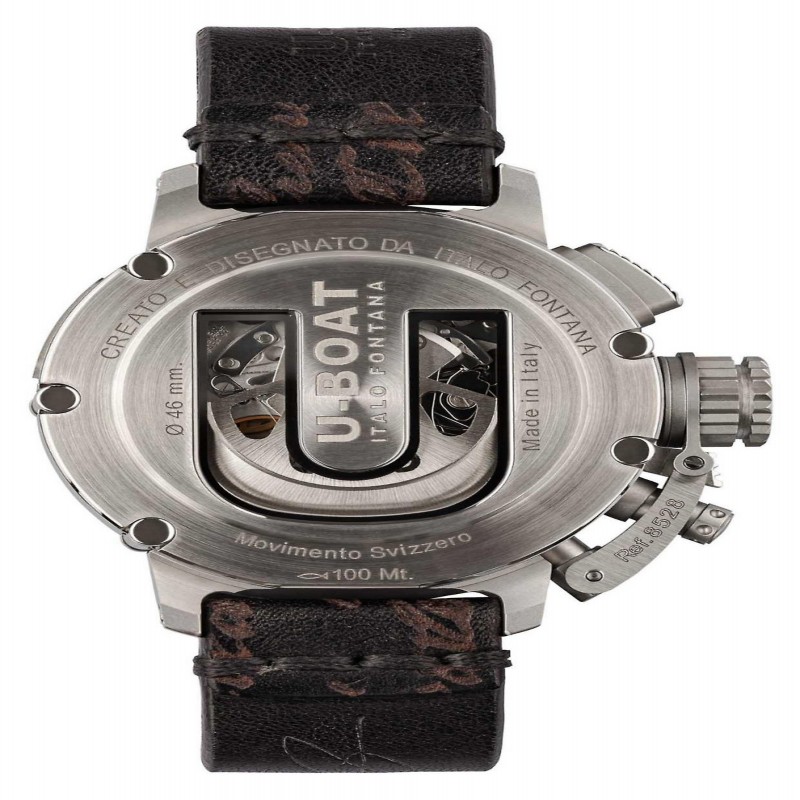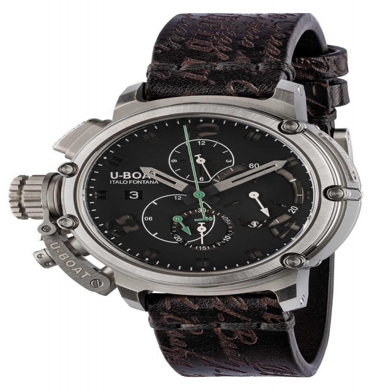 U-boat Chimera herrkronograf i stål, analog automatisk med armband, nötskinn, läder